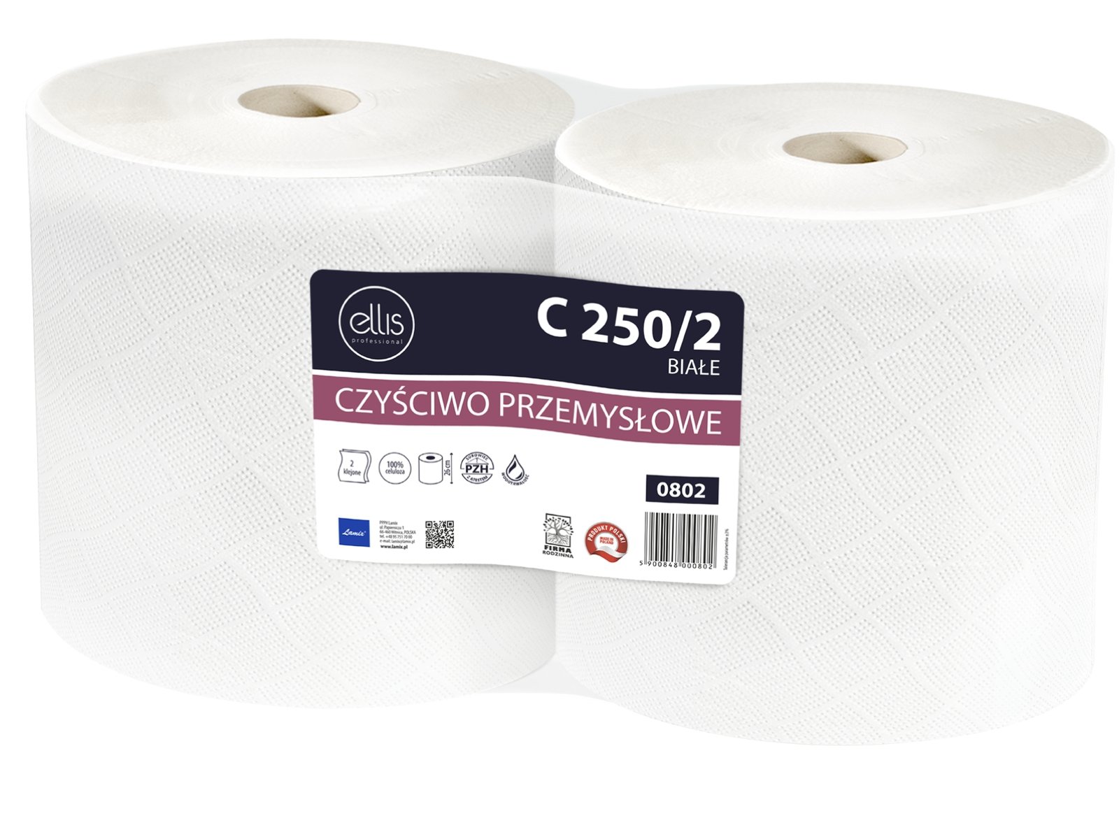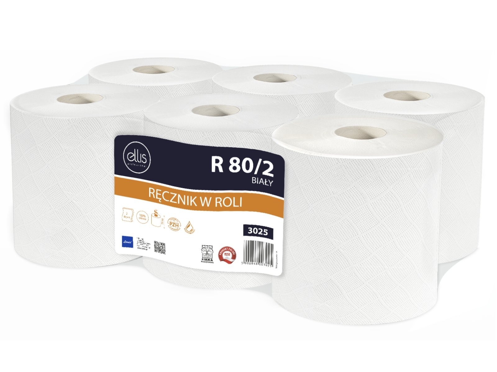 Ellis -  Higieniczny biały ręcznik celulozowy, 2-warstwowy, 80m, 3025