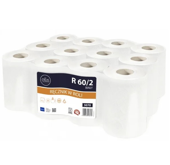 Ellis -  Higieniczny biały ręcznik celulozowy, 2-warstwowy, 60m, 3070